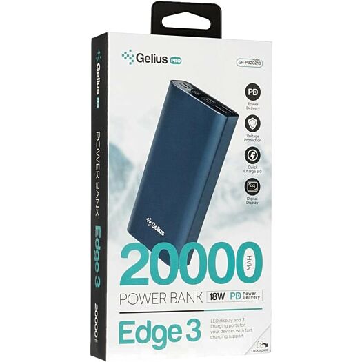 Зовнішній акумулятор (павербанк) Gelius Pro Edge 3 PD GP-PB20-210 20000mAh Dark Blue
