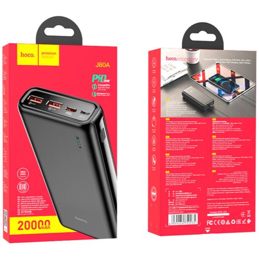 Зовнішній акумулятор (павербанк) Hoco J80A Premium 20000mAh Black