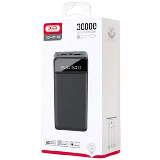 Зовнішній акумулятор (Power Bank) XO Power Bank PR164 with Flashlight 2USB+Type-C 30000mAh Black