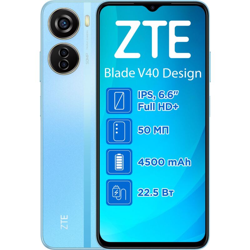 Придбати ZTE V40 Design 4/128GB Blue Ви можете, оформивши замовлення у нас на сайті, а також по телефону гарячої лінії.